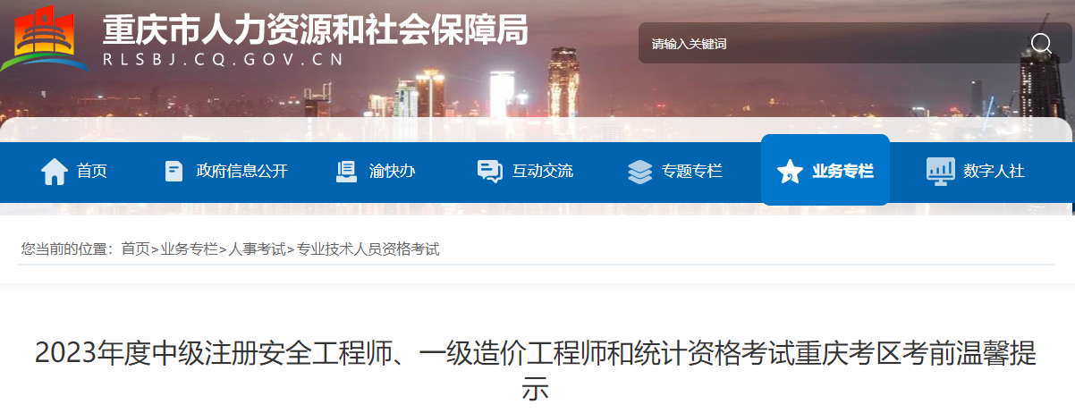 2023年度中级注册安全工程师、一级造价工程师和统计3项资格考试将于10月28日、29日举行,为更好服务考生、维护考试公平公正,重庆市人事考试中心温馨提示如下: