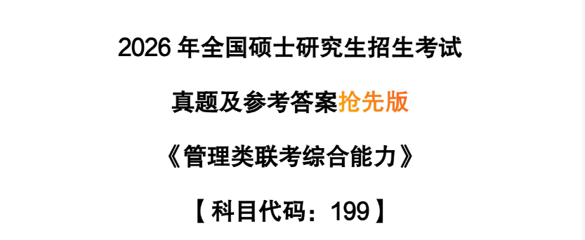 在2026年管理类联考《管理类综合能力》考试结束后,我们迅速收集了考试真题,并精心整理成一份预估分数的参考资料。现在,我们率先推出《2025年管理类综合能力抢先版》,供考生们先行参考,可至页面下方【真题下载】区下载。而更加详尽的完整版本也将在不久的将来与大家见面,请保持关注!