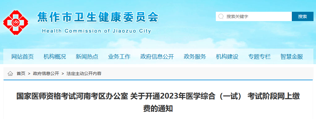 国家医师资格考试河南考区办公室 关于开通2023年医学综合(一试) 考试阶段网上缴费的通知
