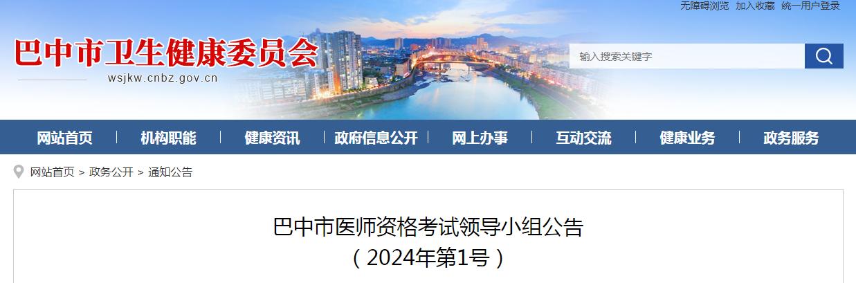 首页 > 临床执业医师 > 报名时间 > 官方发布:2024年四川巴中市临床执业医师资格考试报考公告
