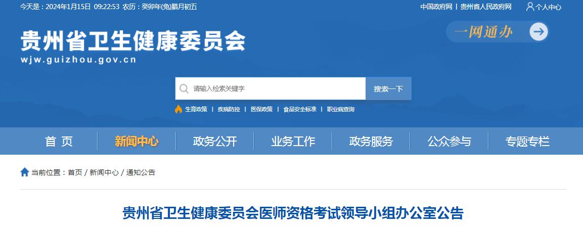 日前,贵州省卫生健康委员会发布了《贵州省卫生健康委员会医师资格考试领导小组办公室公告》,对2024年贵州临床执业医师资格考试报名、审核、缴费、考试等重要时间节点信息做出了明确安排,一起来看一下吧。