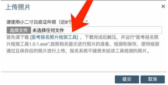(一)考生在网报系统上传个人小二寸白底证件照时,应按照系统提示内容下载并运行“医考报名照片检测工具”,网报系统只接受经该工具检测通过且保存后的照片进行上传。