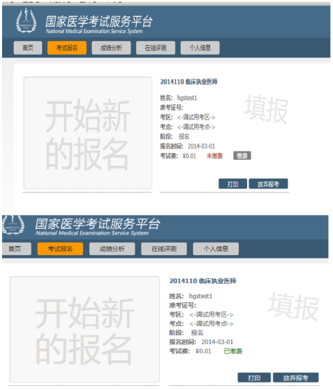 云南考区医师资格考试实践技能考试费用实行网上缴费请考生及时关注“国家医学考试中心官网考生服务端”,考区复审通过后即出现“缴费”灰色字样,请点击并按时完成缴费出现“已缴费”绿色字样即为成功。对于未完成网上缴费成功的考生,视为放弃报名,不能参加医师资格考试实践技能考试。对于缴费后因个人原因无法参加考试的考生一律不予退费。
