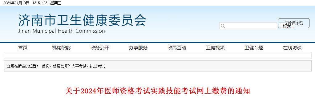 近日,山东济南市卫生健康委员会发布了《关于2024年医师资格考试实践技能考试网上缴费的通知》,从中得知,2024年山东济南临床执业医师资格考试实践技能考试缴费时间为4月12日至4月18日,缴费标准为269元/人。