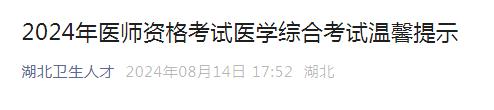 2024年临床执业医师医学综合考试即将于8月17日至18日进行,湖北卫生人才早前发布了《2024年医师资格考试医学综合考试温馨提示》,快来一起看看吧。