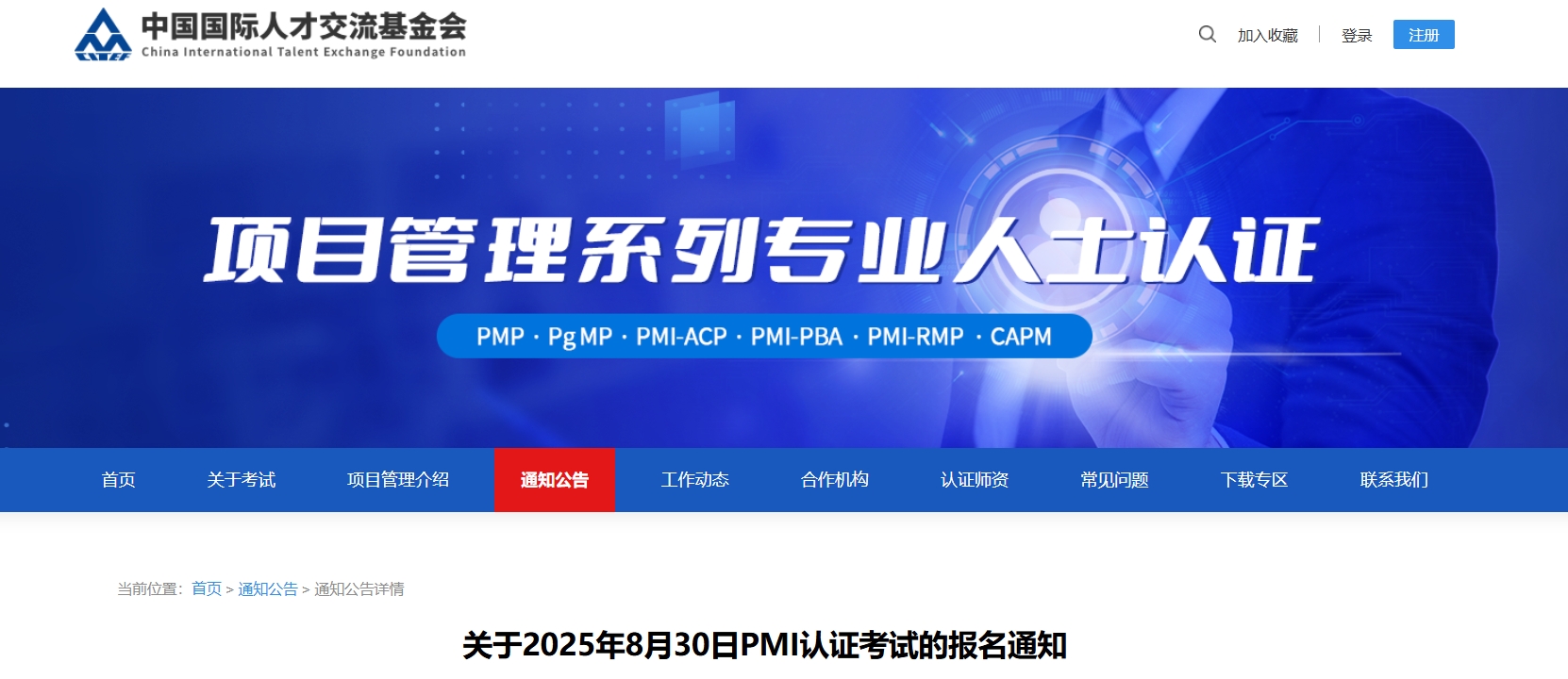 首页 > 项目管理pmp > 报名时间 > 官方通知!2025年8月30日PMP认证考试7月17日起报名!