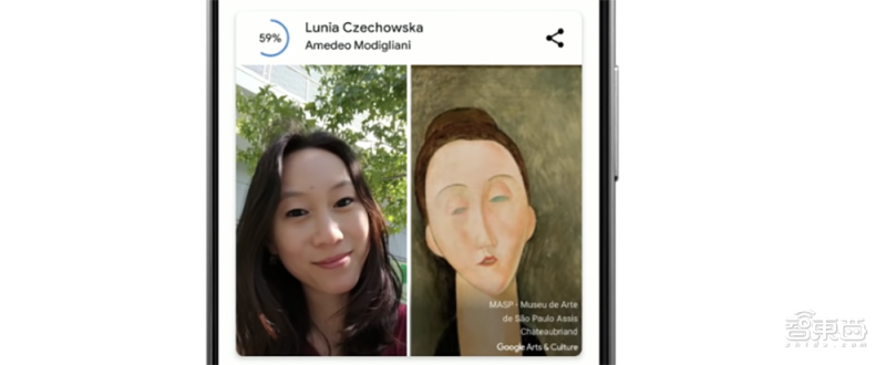 2018 年 1 月,谷歌的艺术与文化应用程序推出了人像自拍匹配艺术作品的功能 Art Selfie,进入这一功能上传照片后,用户就可以看到匹配后的艺术作品以及系统估计每个匹配项和用户脸部的视觉相似度的百分比。