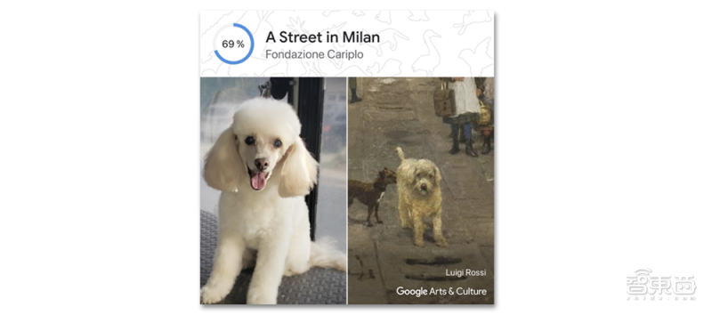 谷歌最新推出的“宠物肖像”功能,依靠算法识别照片,并对照片内容作出分析,从其数据库中寻找相似的艺术作品。