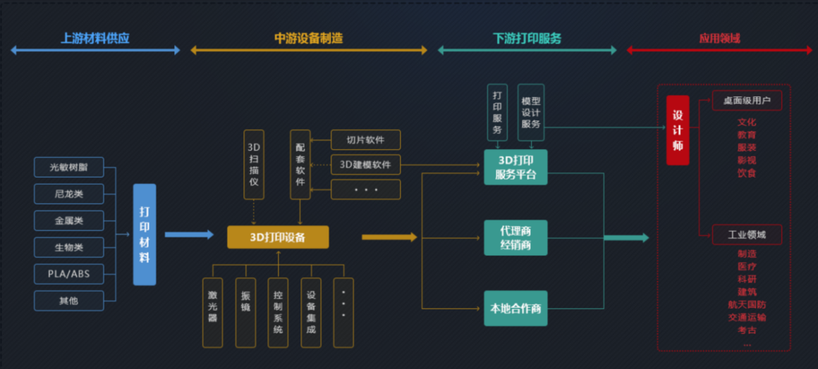 整体而言,3D打印产业可细分为3D建模及数字化服务、3D打印硬件、3D打印材料、3D打印服务四个领域。其中,3D建模作为整个产业工艺流程的首要步骤,其建模质量、效率、成本紧密影响着后续每一个环节的开展,对产业整体迭代进步有着至关重要的引领作用。