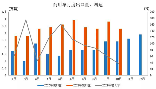 2021年1-10月,商用车出口33.6万辆,同比增长86.0%。