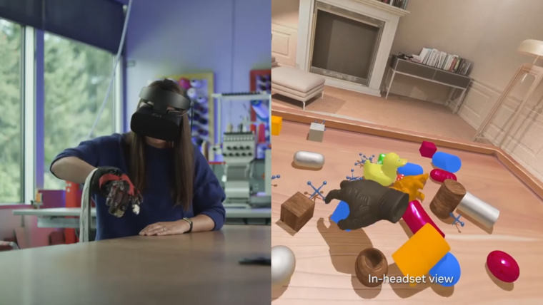 手部追踪:即使有了控制气流的方法,整个系统也需要知道在何时何地为用户提供正确的感觉反馈。meta 正在研发手部追踪技术,可以准确识别用户手在虚拟场景中的位置,并且检测用户的手是否与虚拟物体接触,以及用户的手如何与虚拟物体互动。
