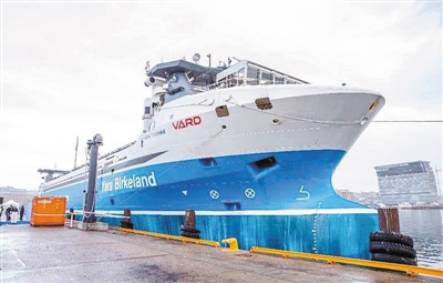 近日,推迟了很久才启用的“雅苒比尔克兰”号货轮把120个装满化肥的集装箱从挪威一个工厂运至12公里外的港口,该货轮每年减少的二氧化碳排放相当于4万辆卡车每年排放的二氧化碳。