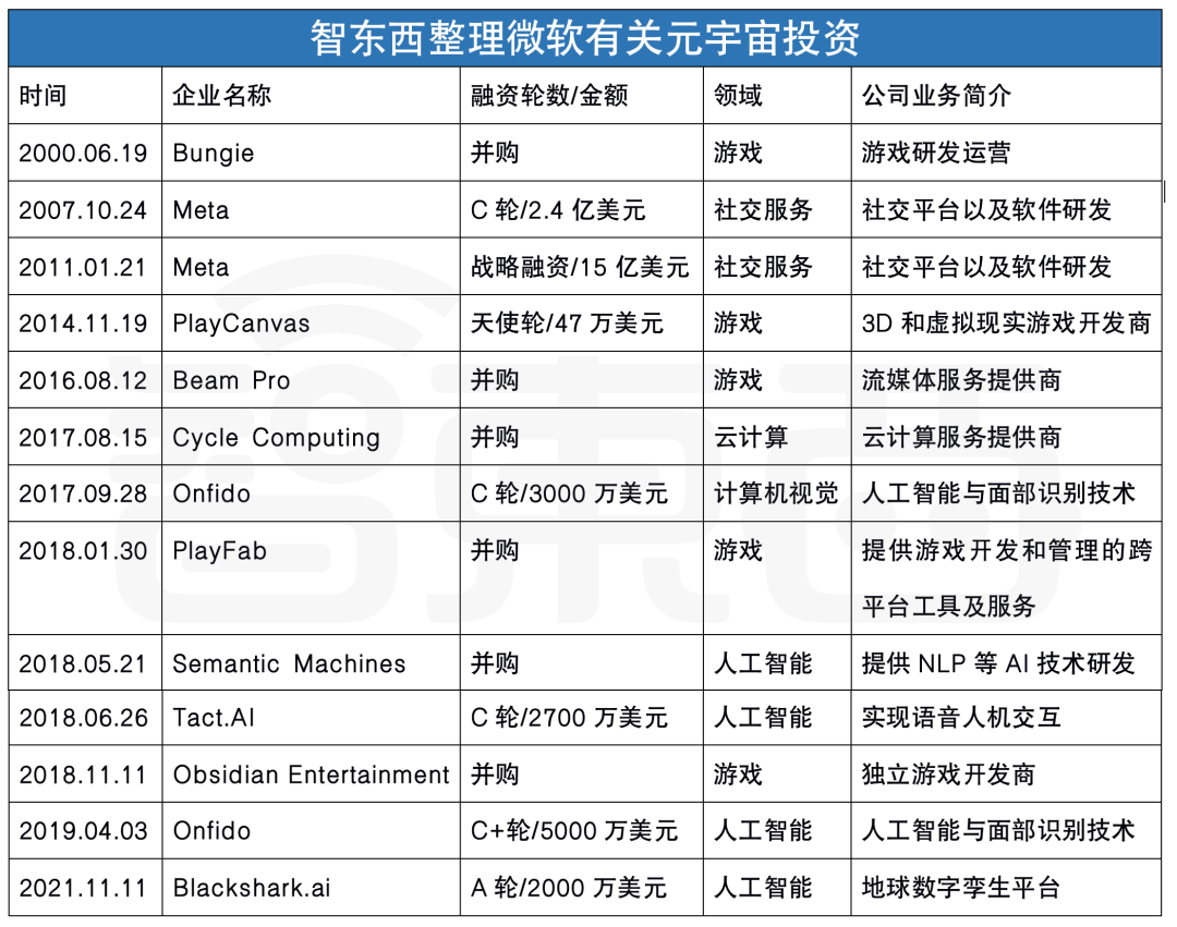 据智东西不完全统计,微软共投资了 11 家与元宇宙有关的公司,其中还参与部分公司的多轮融资。