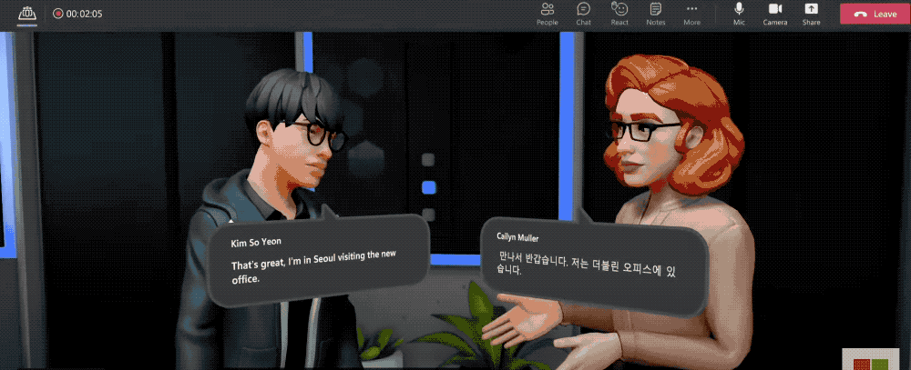 Mesh for Teams 平台支持用户自定义形象参加线上会议,甚至还可以打造一个沉浸式的虚拟空间,让新员工能在其中办理入职手续,举办派对等活动。