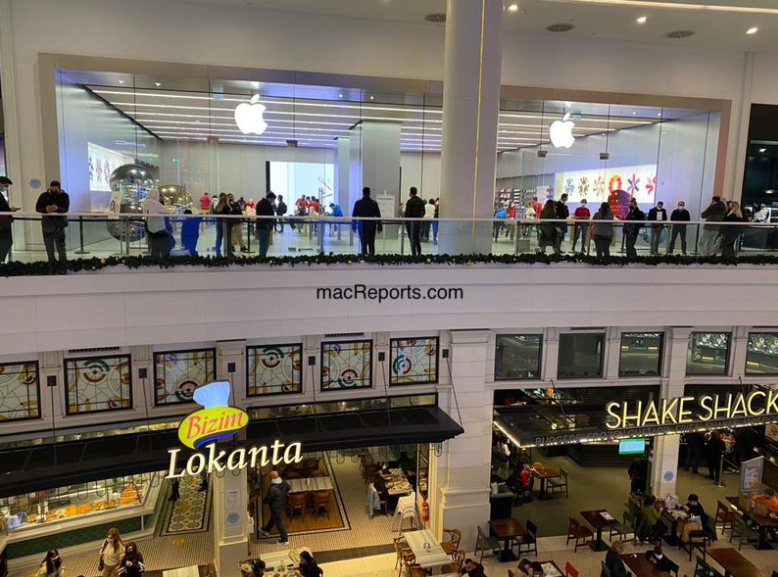 macReports 分享的图片显示,顾客在土耳其伊斯坦布尔的两家 Apple Store 外等候。有服务预约的顾客被允许进入,而希望购买产品的顾客却被拒之门外。