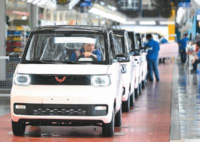 广西柳州一家汽车企业的工人正在新能源汽车生产线上忙碌。新华社发 黎寒池摄