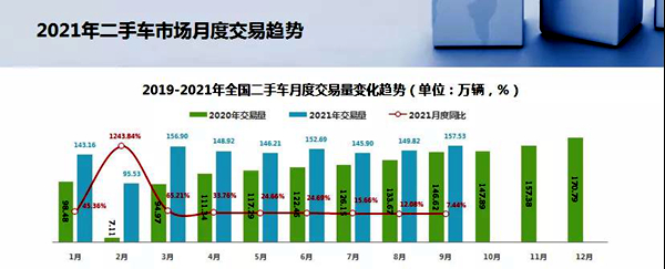 北京11月3日电 (记者王连香)日前,中国汽车流通协会发布《2021年9月全国二手车市场深度分析报告》(以下简称《报告》),《报告》显示,今年三季度,全国二手车交易量为453.26万辆,较去年同期增长11.52%。全年交易规模预计达到1600万辆;9月,全国二手车市场交易量157.53万辆,交易量环比增长5.14%,交易金额为1040.28亿元。