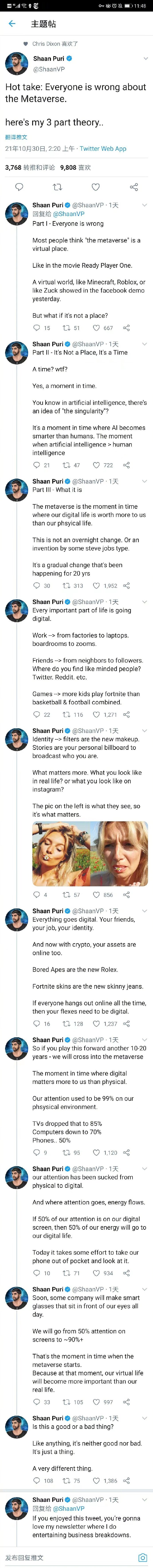 罗永浩表示,Shaan Puri 对于元宇宙的理解比扎克伯格靠谱多了。从这个角度出发,我们未来在科技行业要做的很多事,都会不可避免地引领我们走向这个元宇宙,甚至不管我们是否愿意。