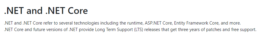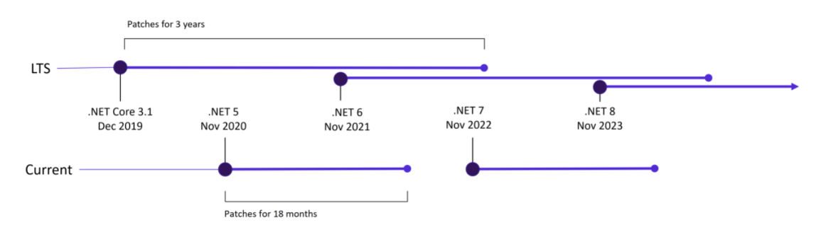 微软表示.NET 和.NET Core 的未来版本将会一直提供长期支持版本,且每个版本均可获得三年的补丁更新和免费支持。