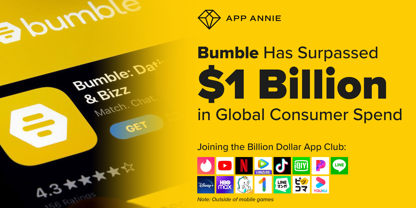 12 月 6 日消息,App Annie 最新报告显示,Bumble 应用已加入十亿美元俱乐部,且是 Tinder 之外唯一的约会应用。