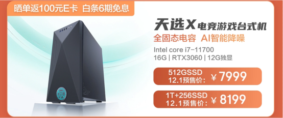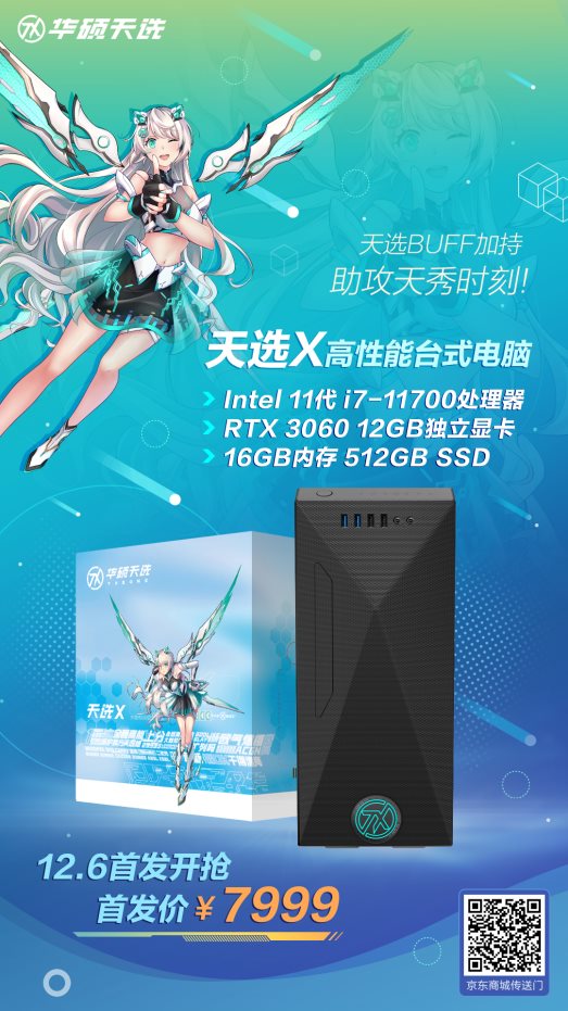 12月6日,华硕天选X高性能台式电脑新品在京东商城正式开售。此次,天选X高性能台式电脑在处理器上进行强化进阶,全面配备第十一代英特尔酷睿处理器,并有多种配置可选。其中,搭载英特尔酷睿i7-11700处理器,16GB内存,512GB SSD固态双硬盘,以及RTX 3060独立显卡的组合,开售惊喜价7999元。