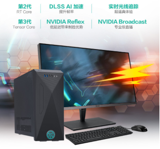 华硕天选X高性能台式电脑配备的NVIDIA GeForce RTX 3060独立显卡也有着十分强劲的性能表现。RTX 3060基于先进的NVIDIA Turing架构,不仅仅带来了底层硬件性能的提升,还带来了不少新的AI技术,以提升用户的用机体验、游戏的帧数表现。有RTX 3060显卡加持的华硕天选X,在目前的3A大作中,最高画质下也能保持不错的流畅度,让用户获得更加精彩的视觉体验!
