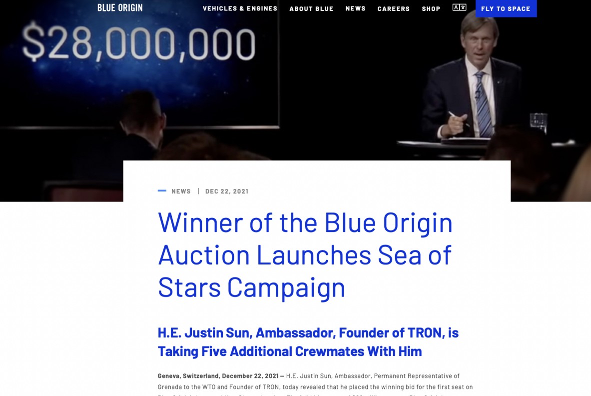 12月22日,波场TRON创始人孙宇晨宣布入局商业航天。不久后,航天领域专业媒体《卫星与网络》官方公众号头条于当日发表题为《新航天:孙宇晨的六张“新谢泼德”船票,谁会抢一张》的长文,从专业角度分析孙宇晨为什么选择蓝色起源。