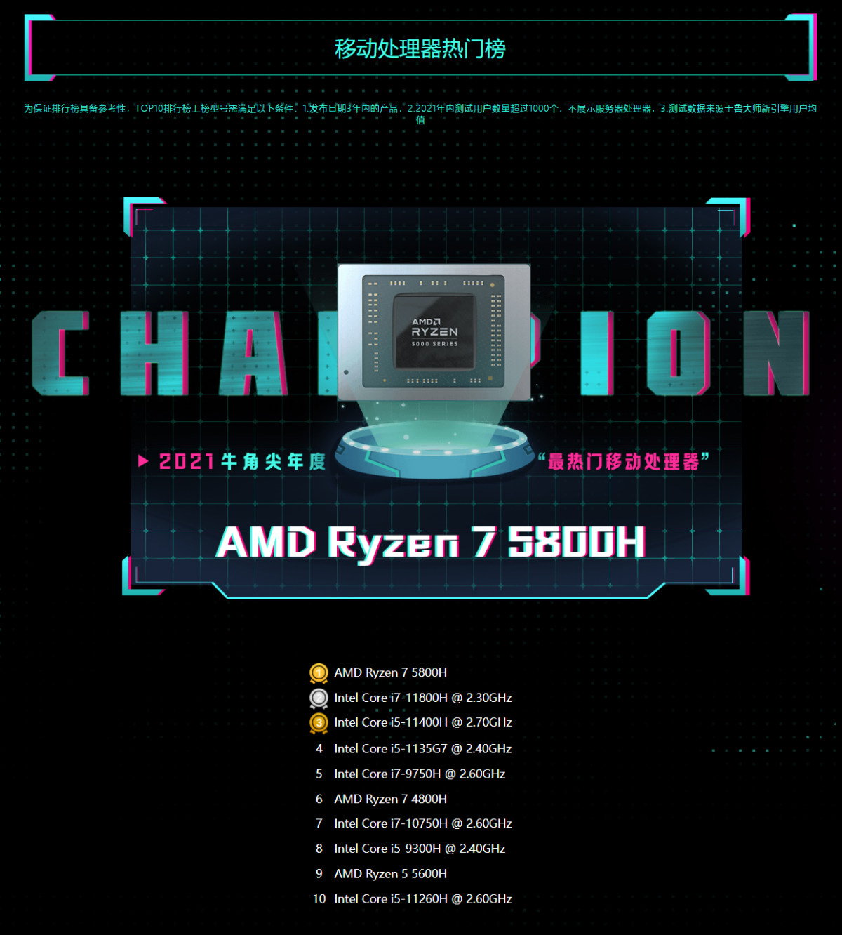 2021年是笔记本市场最盛的一年,将养出了一大批优秀的笔记本CPU,其中,以AMD Ryzen 7 5800H with Radeon Graphics移动处理器侠义之名远播江湖,颇受众人爱戴,获得鲁大师2021牛角尖奖“最热门笔记本处理器”头衔,击败众多对手前辈,成为用户使用规模最多的移动CPU产品。
