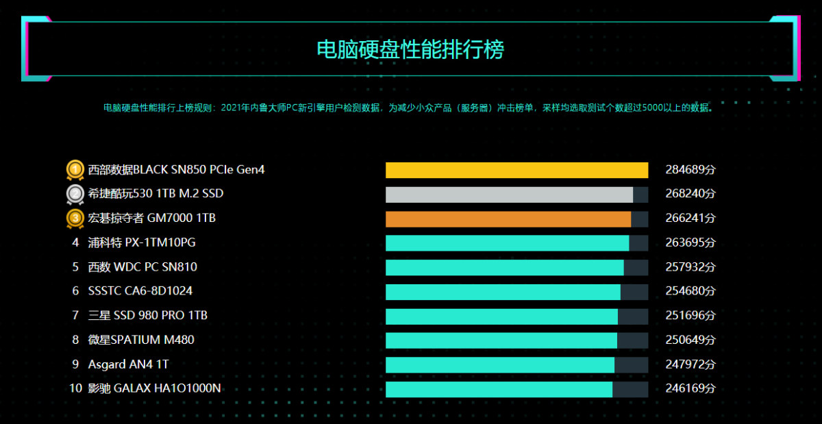 电脑硬盘性能排行:西数BLACK SN850再夺冠