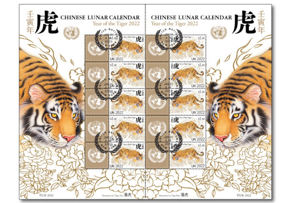 联合国邮政管理局21日在纽约发行中国农历壬寅虎年特别版邮票版张,庆祝中国农历新年的到来。