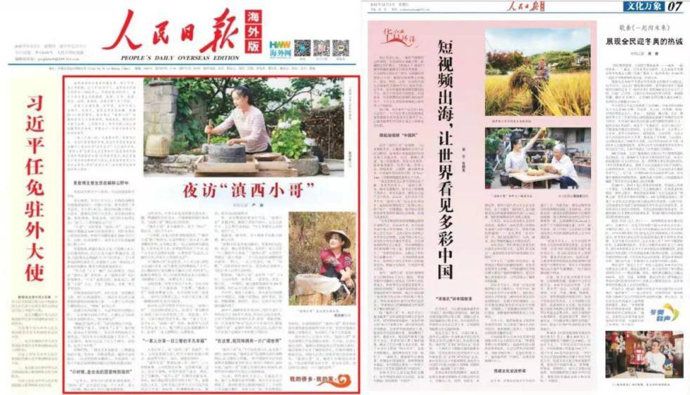 在2020年9月和2021年12月,滇西小哥两次登上人民日报海外报,被大幅报道。