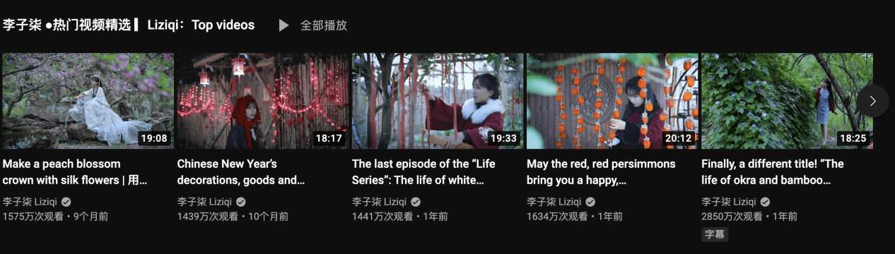 这些博主拍摄的短视频在国外平台的影响力不输李子柒,有的甚至超越了李子柒。