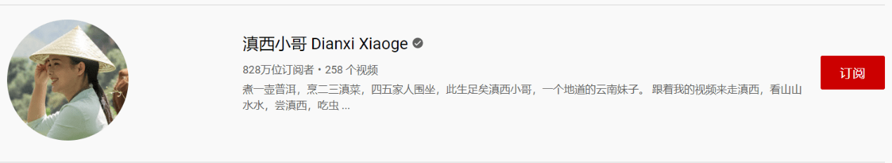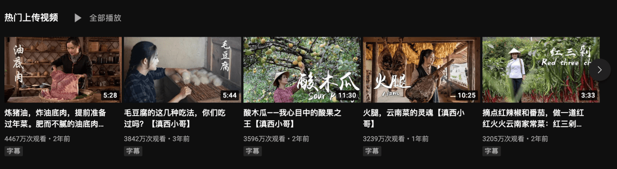 截止目前,滇西小哥在YouTube的热门视频播放量已经远远超过李子柒。一个看起来柔柔弱弱的女孩子,用自己的力量,将故乡云南展现在世界面前。