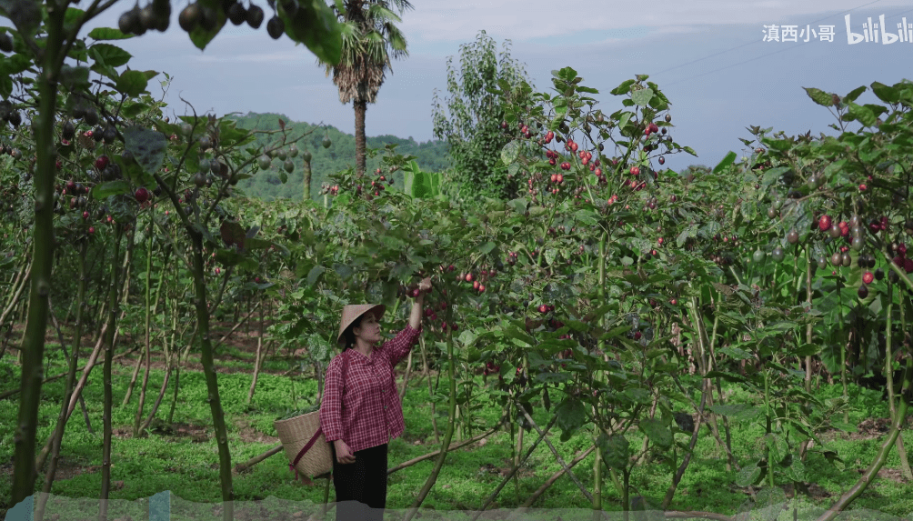 在蓝天白云之下,房屋依山而建,树木葱葱郁郁,果树枝头硕果累累,半山坡星罗棋布地分布着梯田和梯地,人们或三五成群地聚在一起聊天说笑,或躬身于田间地头各自忙碌,狗狗“大王”闲适地趴在屋前休息。通过滇西小哥的视频,不少外国网友爱上了云南。