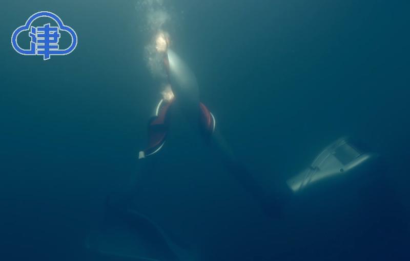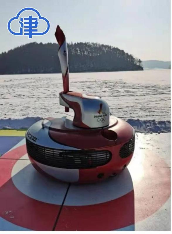 水下传递环节共包括机器人冰面滑行入水、水下火炬交接传火、机器人出水三部分。首先出场的是水陆两栖机器人,形态与图饰色彩持重而灵动,从外观上看,它颇似一颗滴溜溜转的冰壶。冬奥火炬被设置在它的把手位置,好像正在被高高举起。