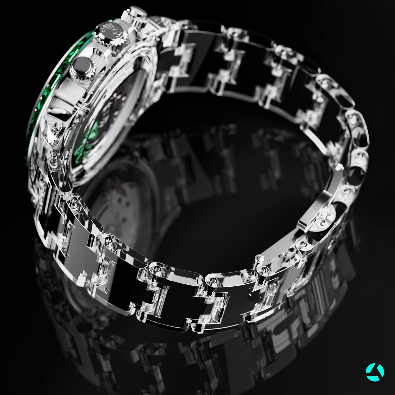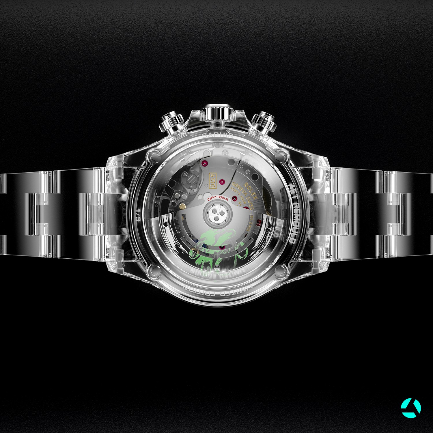 对于“Loong”来说,它最了不起的成就是蓝宝石水晶工艺的应用。虽然这一工艺在表壳、表镜的制造中很常见,但用它来制作表带且成功出品,却是很难实现的。