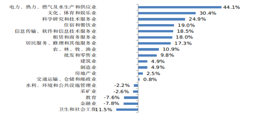 图为2021年各行业新设企业量增速。来源:市场监管总局