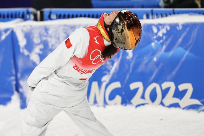 2月14日,中国选手徐梦桃在比赛中庆祝。新华社记者吴壮摄