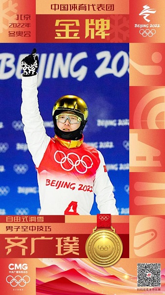 在昨晚结束的自由式滑雪男子空中技巧决赛中,中国队选手齐广璞战斗力满格,发挥极为出色,稳稳将金牌收入囊中。这是中国空中技巧男队继2006年在都灵冬奥会上摘得首金后,再次在该项目上夺冠。逐梦四届冬奥,齐广璞今朝梦圆。