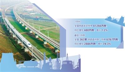 全国铁路1月份发送货物同比增加480万吨——