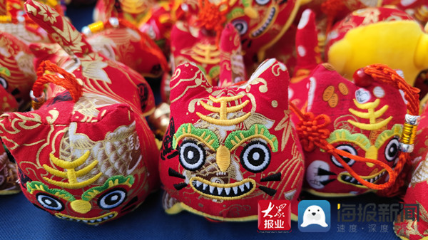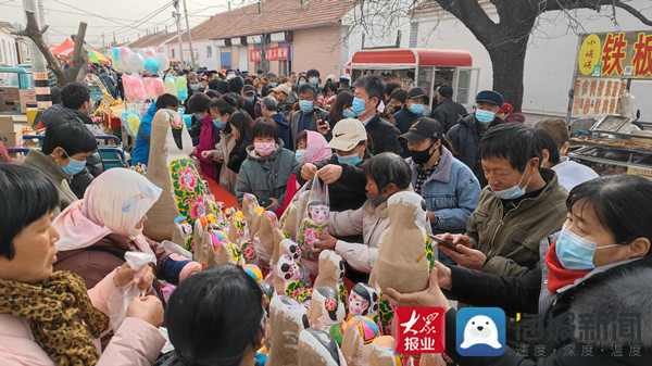 庙会上,映入眼帘的是琳琅满目的商品,耳旁传来此起彼伏的叫卖声,不远处,惠民特产展位前车水马龙,惠民泥塑、木版年画、柳编、木雕、布老虎,刺绣等特色产品使游客爱不释手,大家购买一对“泥娃娃”带回家,期待新的一年生活美满,家庭幸福。非遗传承人们用自己的拿手绝活,向前来逛庙会的群众展现这非物质文化遗产的独到韵味。
