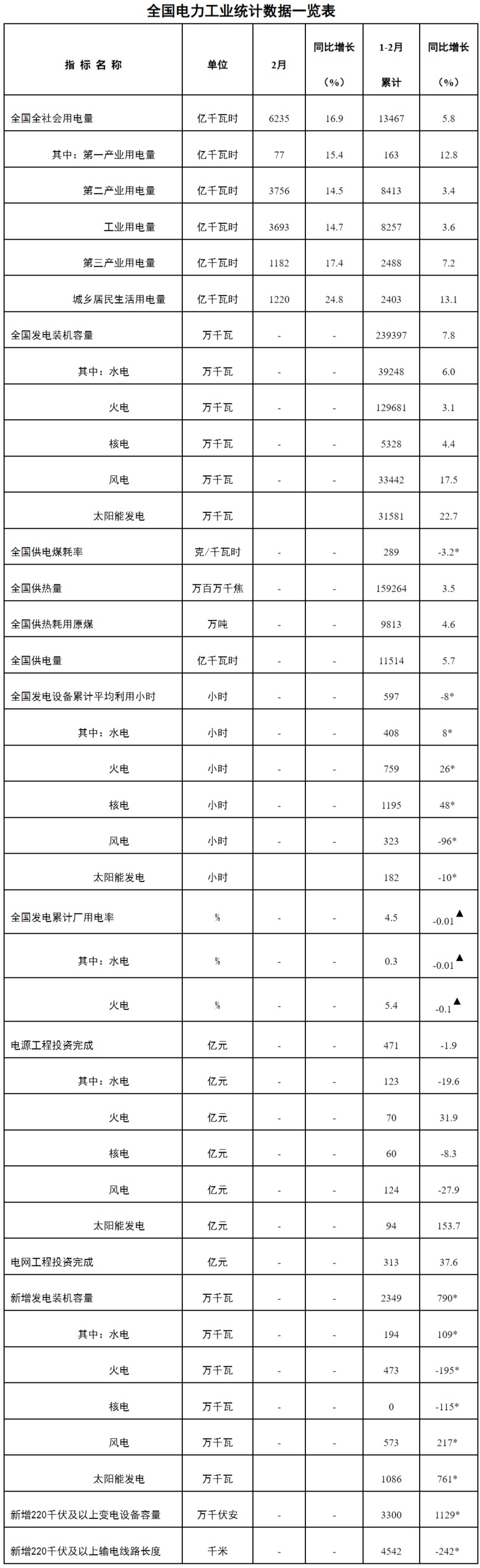 3 月 21 日消息,今日,国家能源局发布了 1-2 月份全国电力工业统计数据。
