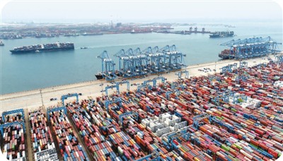 强大的货物贸易能力,是很多外资来华投资的重要理由。图为5月9日的山东青岛港,自动导引车、高速轨道吊来回穿梭,各个港区一派繁忙,货轮有序进出。