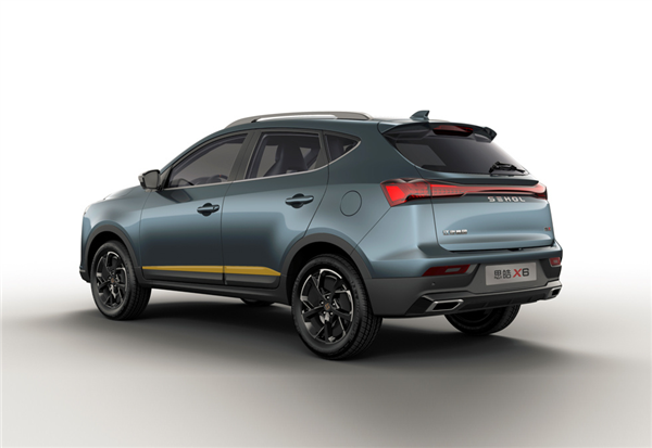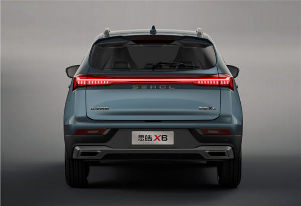 思皓X6定位于紧凑型SUV,长宽高分别为4505/1850/1698mm,轴距2660mm,新车尾部造型简洁,贯穿式尾灯这一流行设计出现在车上,与双边两出的方形排气一起,为尾部增加运动气息。