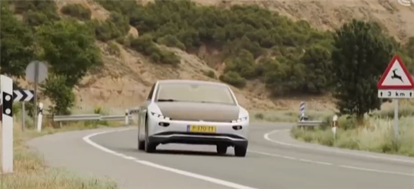 由荷兰“光年”汽车公司设计的全球首款量产版太阳能汽车,近日在西班牙纳瓦拉地区进行了道路测试。