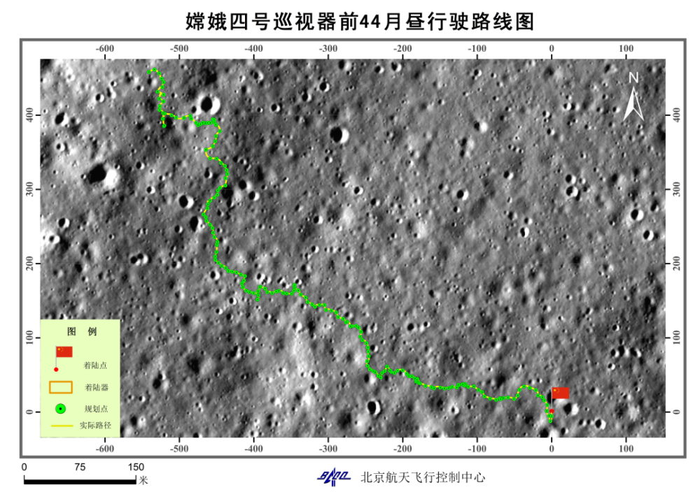 嫦娥四号巡视器前44月昼行驶路线图。北京航天飞行控制中心供图