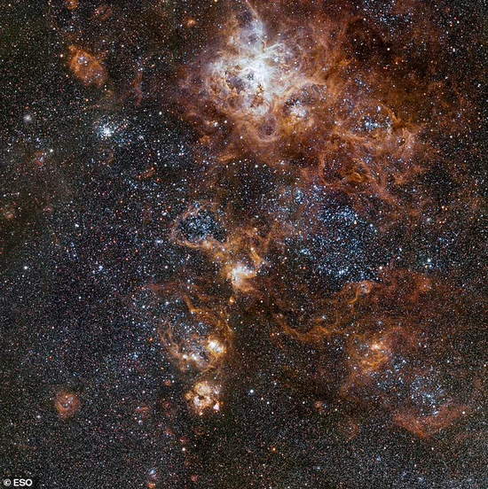 欧洲南方天文台 VLT 巡天望远镜成像狼蛛星云及其周围环境,呈现了星团、发光气体云和超新星爆炸的零散残骸。
