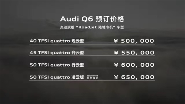 7月24日晚间,上汽奥迪Q6正式亮相并开启预订,其共推出四款车型,售价区间为50-65万元。