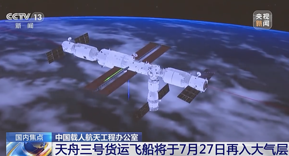 7 月 27 日消息,据中国载人航天工程办公室消息,前期撤离空间站组合体的天舟三号货运飞船完成了既定的空间技术试验,将按计划于北京时间 2022 年 7 月 27 日受控再入大气层,少量残骸将落入南太平洋预定海域。