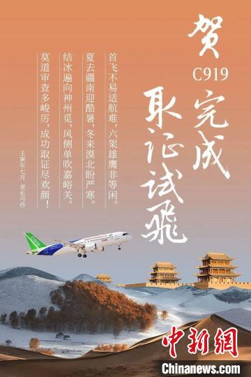 上海8月1日电 (记者 殷立勤)8月1日,中国商飞微信公众号晒出贺图,官宣C919完成取证试飞。